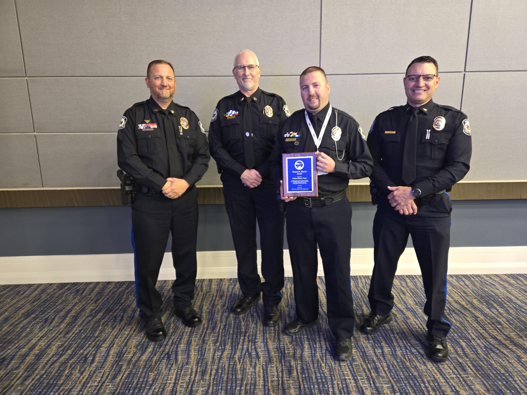 The Grain Valley Police Department is proud to announce that School Resource Officer (SRO) Danny Iiams was awarded the esteemed Thomas R. Meyers Award by KC-ASIS on Friday, June 6, 2025. KC-ASIS is an organization dedicated to providing protection for the private security sector and honoring officers who demonstrate the highest levels of community service.