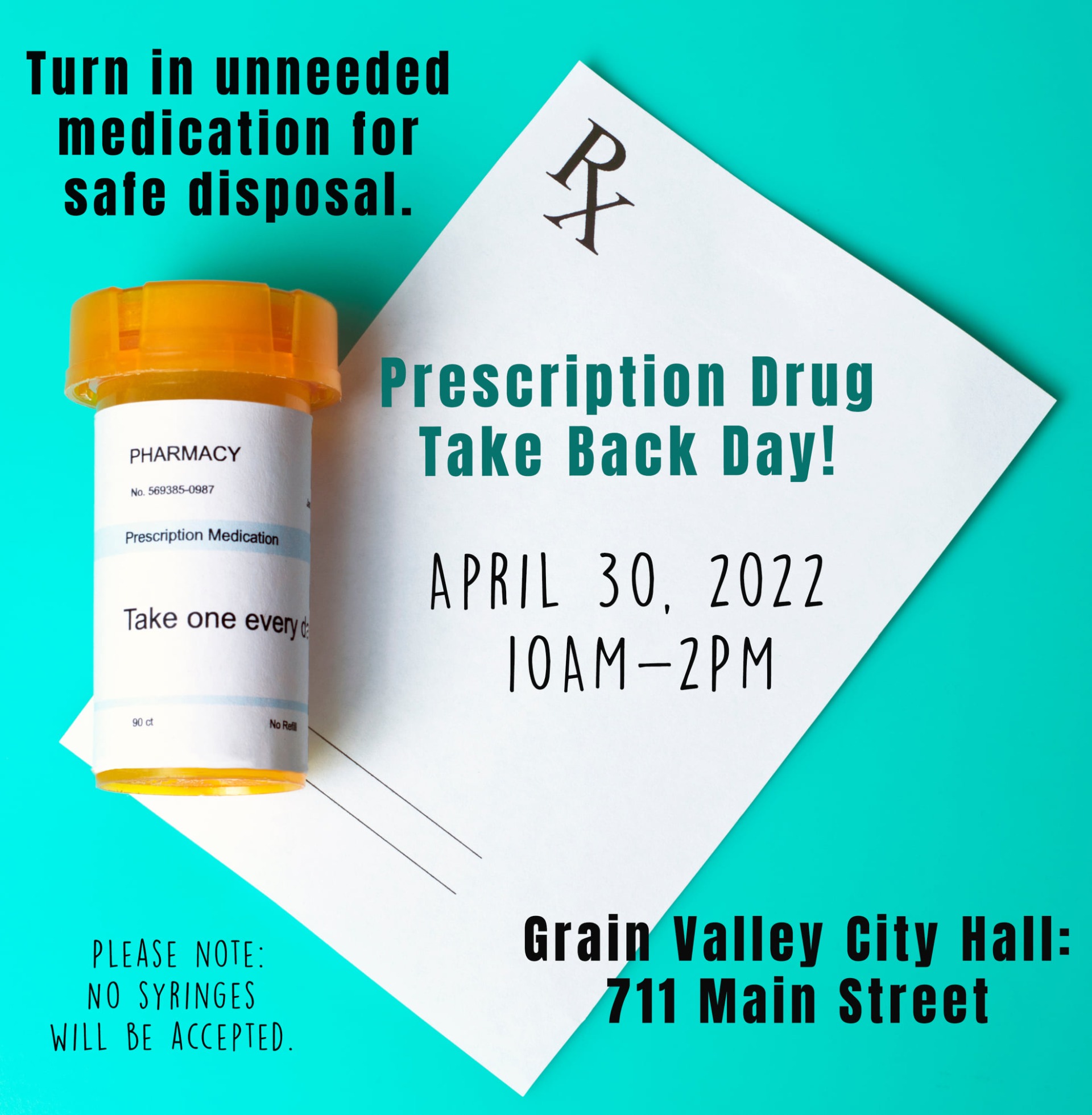 Prescription Take Back Day is coming soon. Bring your unneeded prescription and over the counter medicines to us for safe and anonymous disposal. The event will take place on the SE end of the City Hall parking lot.